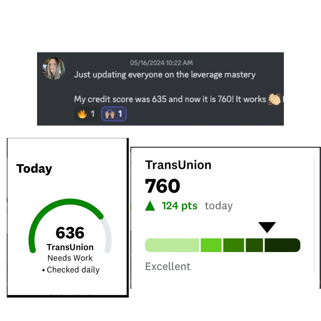 I was skeptical at first, but Leverage Mastery truly delivered! My credit score increased by 80 points, and I secured a $10,000 credit card for my online business.